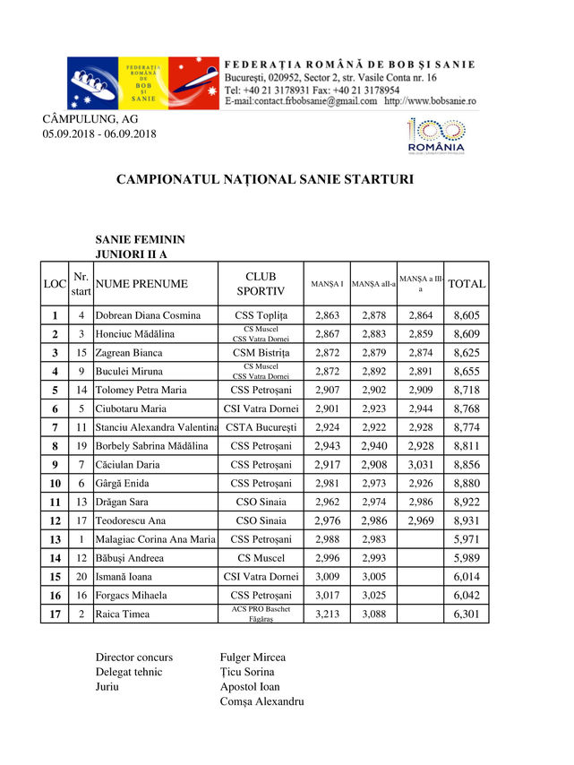 CAMPIONATUL NATIONAL SANIE STARTURI-SEPTEMBRIE